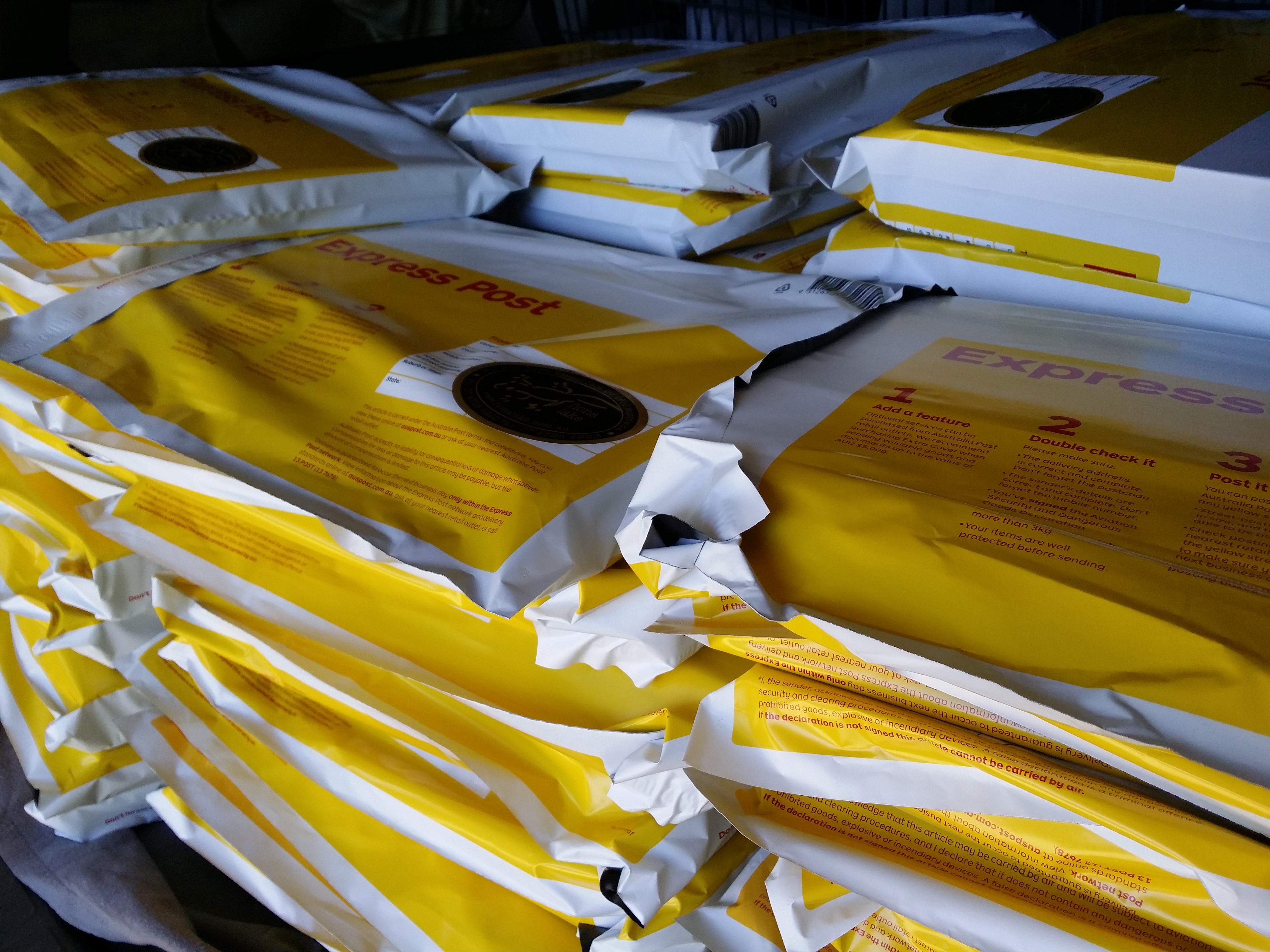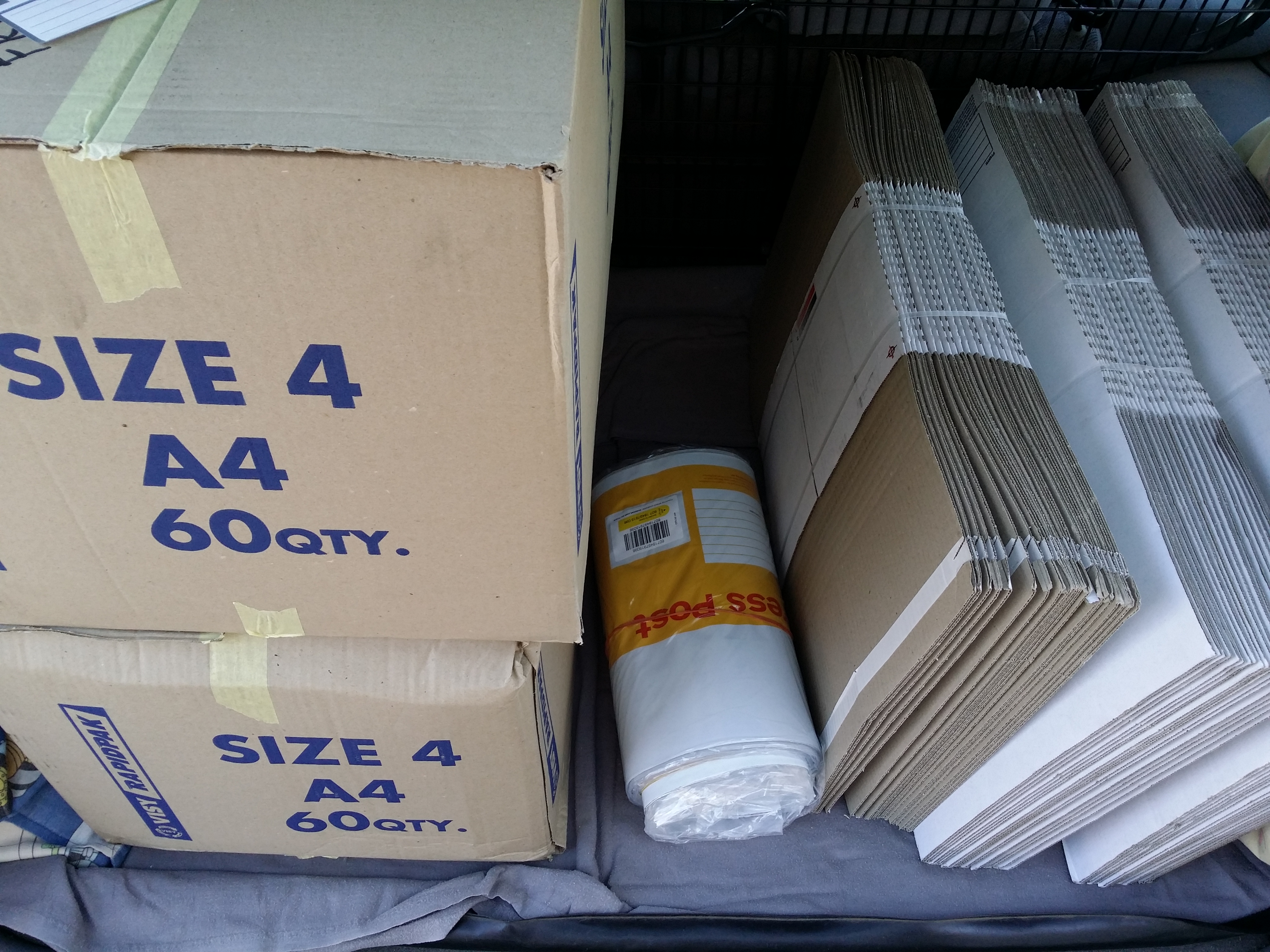 <— Packing these…then back to the post office to mail them away, & buy more packing material!